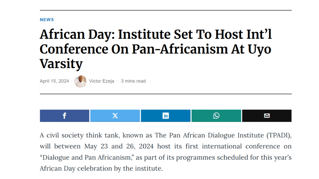 Africa Day: Institute Set to Host Int'l Conference on Pan-Africanism at Uyo Varsity.