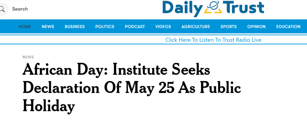 Africa Day: Institute Calls for 20-Year Ban on Former Politicians Seeking Office, Pushes for National Holiday in Nigeria.
