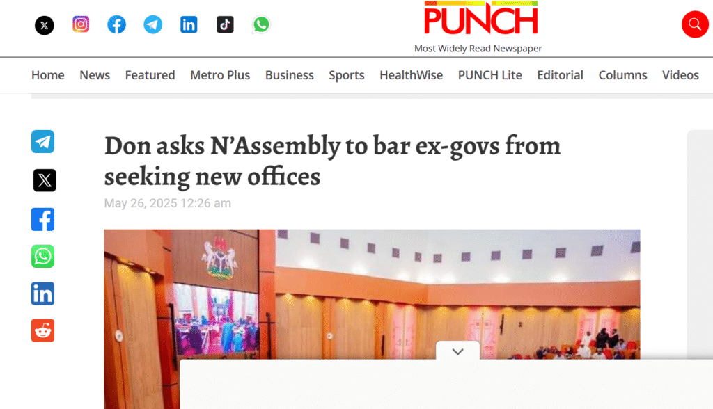 Don asks N'Assembly to bar ex-govs from seeking new offices